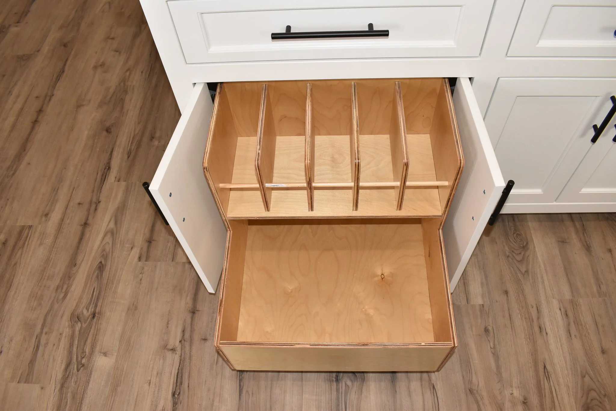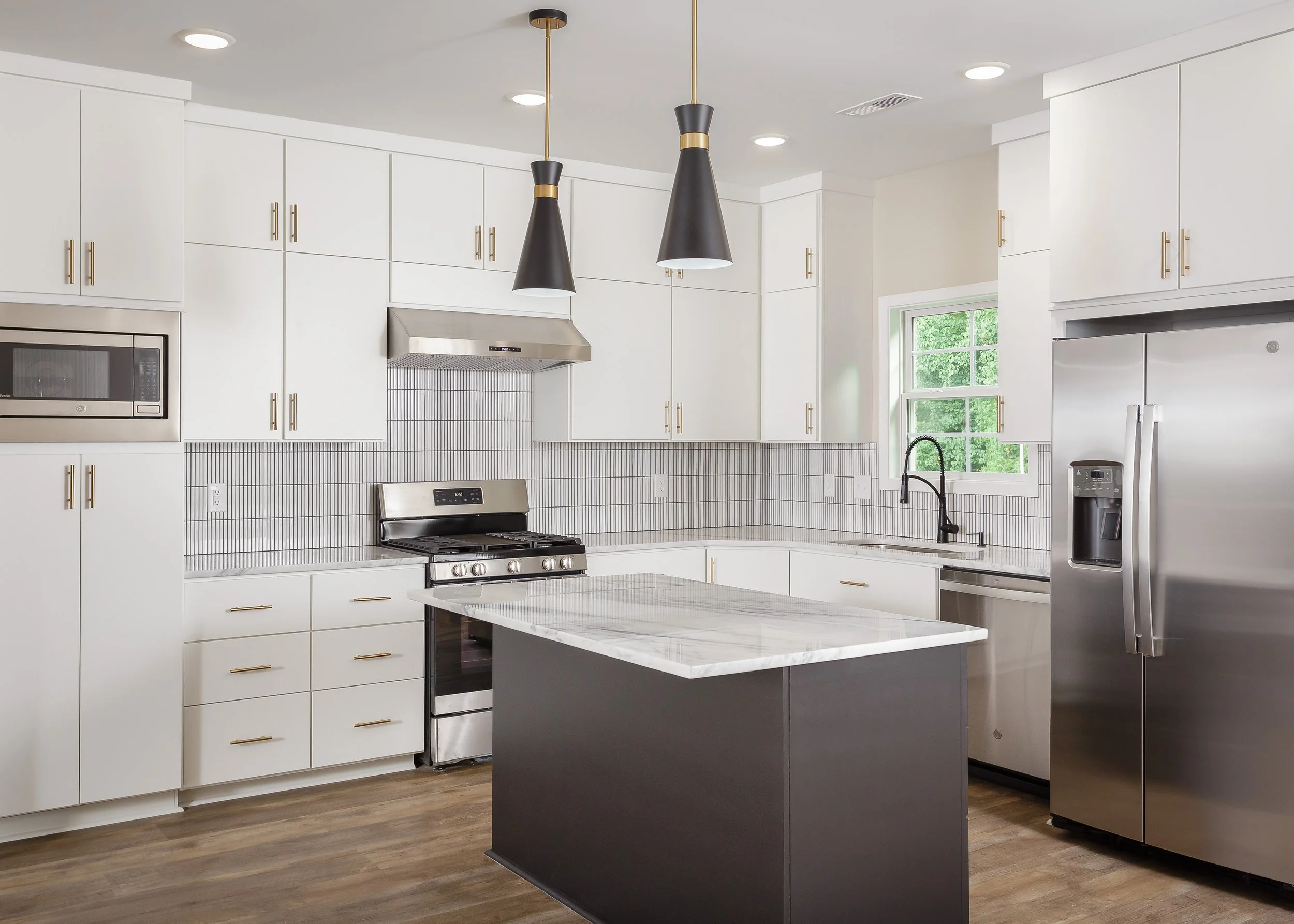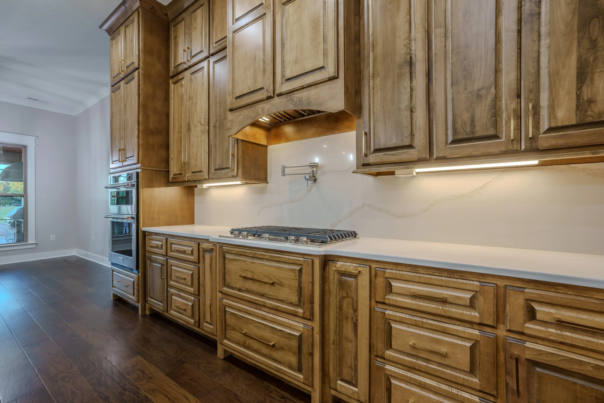 Explore Our Endless Custom Options Cabinets With Flat Panel Doors Natural Stained Kitchen Modern White Kitchen & Living Areas Modern Shaker Kitchen & Living Areas Modern Black & White Kitchen & Bathroom Fireplace Walls Specialty Pullouts Custom Hood Vents Mud Benches White Oak with Simply White Stain Stained Cabinets